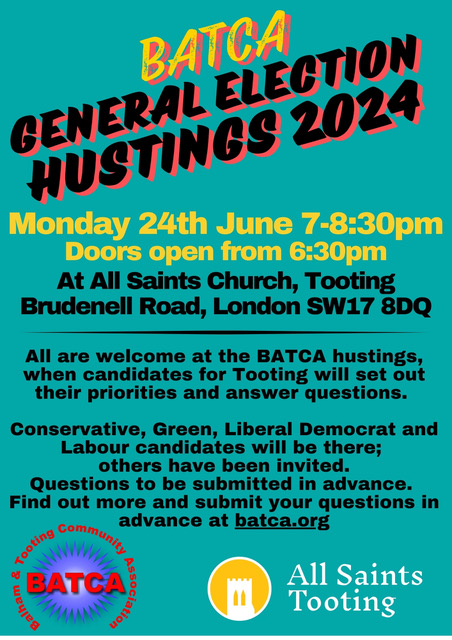 BATCA is holding a hustings for the forthcoming General Election to give you the opportunity to hear directly from the candidates for Tooting, and put your questions to them.