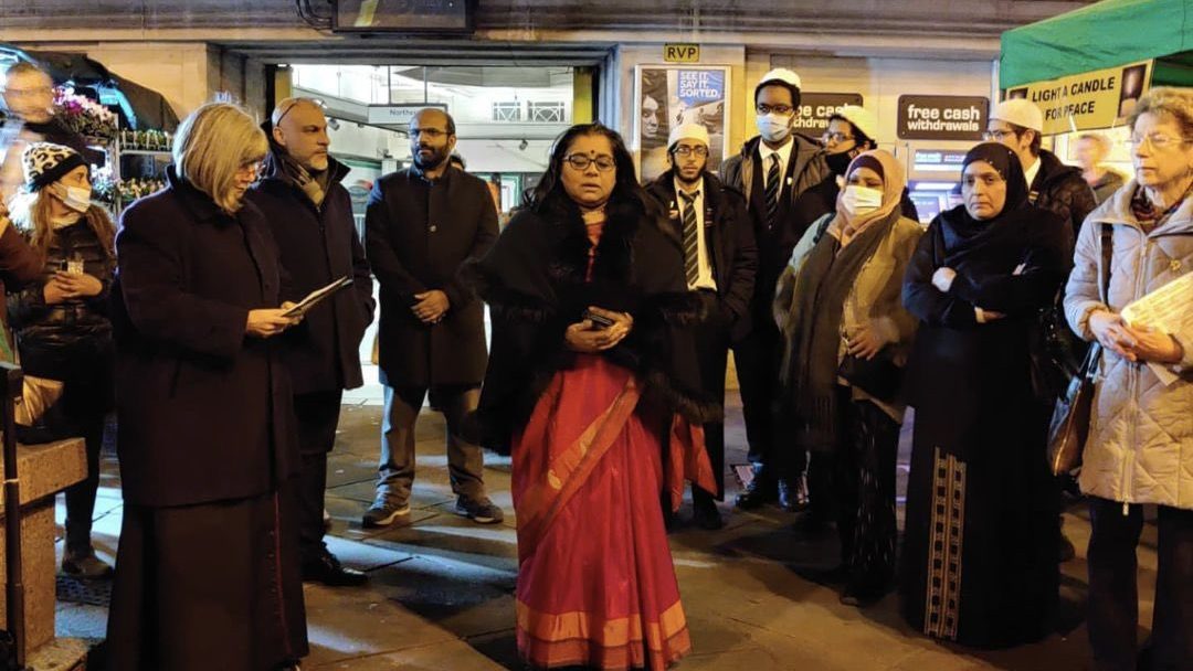 A candlelit open air multi-faith ceremony of peace and prayer is held every autumn outside Tooting Broadway tube station. It brings together Buddhist, Christian, Hindu, Jewish, Muslim and Sikh faith leaders praying and speaking, together with local politicians and members of the public. The 2023 event took place on Tuesday 14 November.